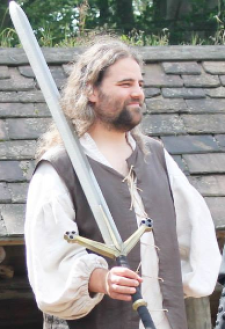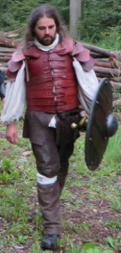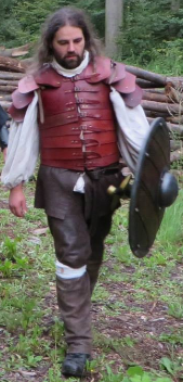 Seine Bewaffnung wechselt beständig zwischen Anderthalbhänder und Einhänder mit Schild.