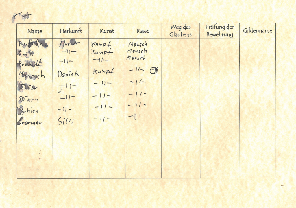 Grundinfo´s zur Gilde